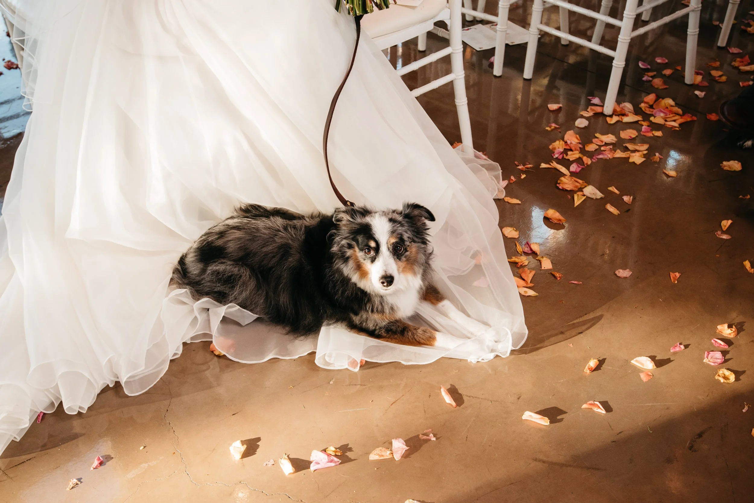 In fact, most dogs are happiest when they’re included in a shorter, more intentional window - like the ceremony and a handful of portraits, before heading somewhere quiet and familiar.